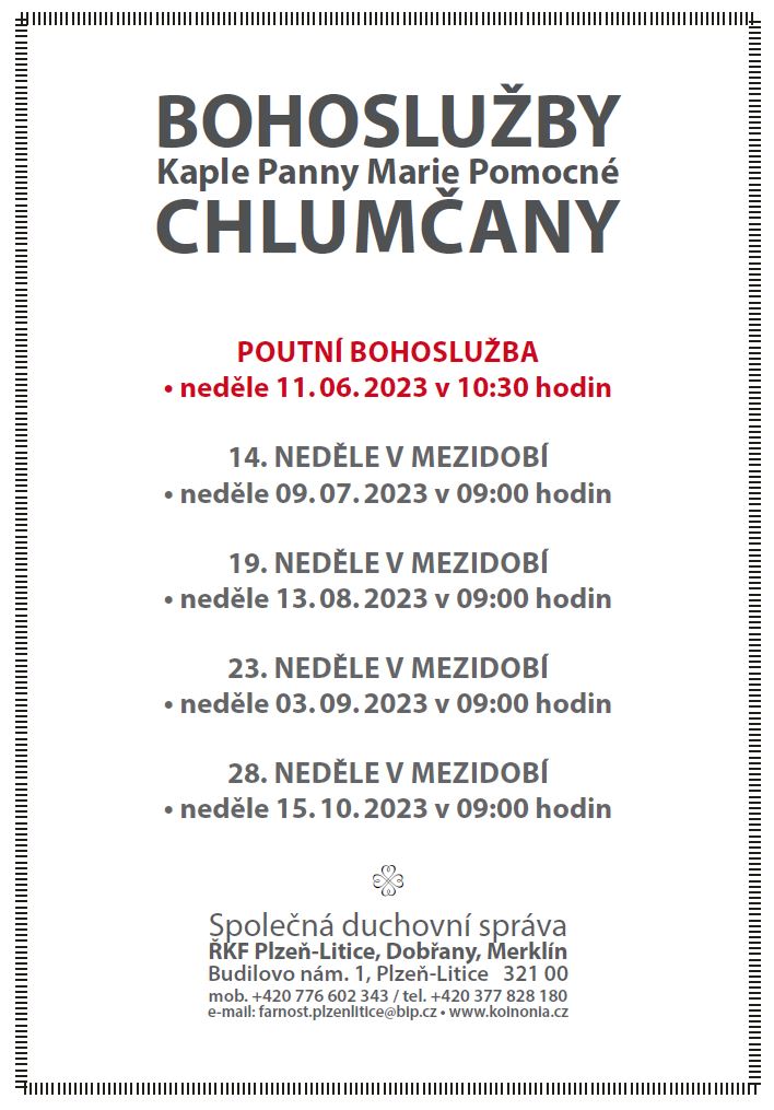 Bohoslužba Chlumčany - Kaple Panny Marie Pomocné