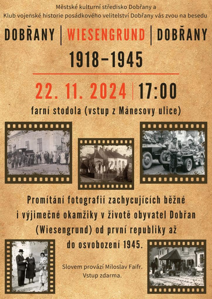 Promítání fotografií Dobřany Wiesengrund 1918 -1945